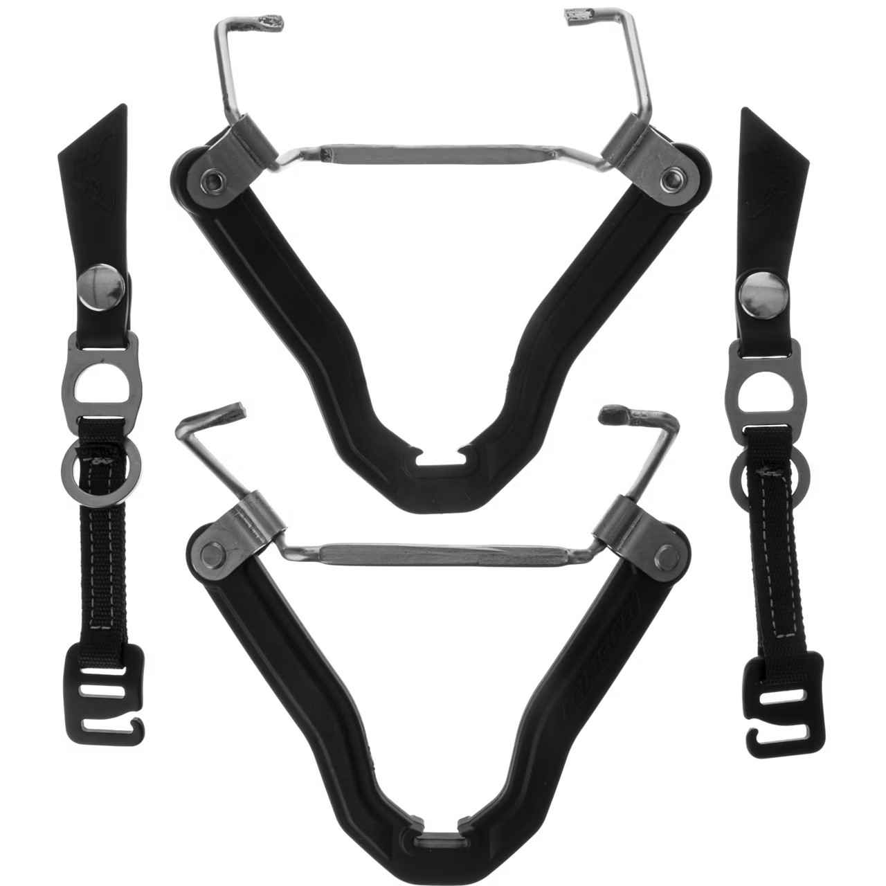 Une paire d’étriers avant pour convertir une paire de crampons en modèle avec fixation semi-automatique. Compatibles avec les crampons DYNAFIT DNA et les crampons DYNAFIT Mezzalama.