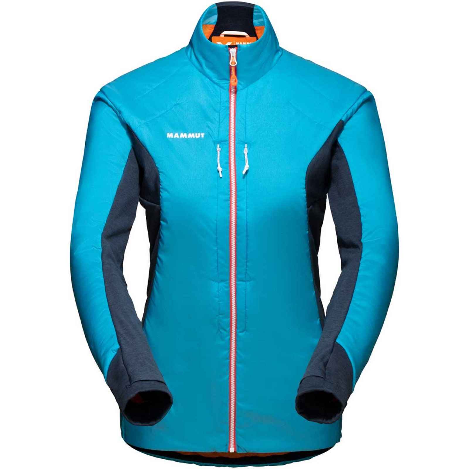 Eigerjoch IN Hybrid Jacket Women. La veste isolante née pour la performance de notre collection MAMMUT Eiger-Extreme, dotée d’empiècements en polaire stretch pour une liberté de mouvement et une respirabilité optimales. L’isolation ciblée en Primaloft® Gold Active possède un grand pouvoir de rétention de la chaleur sans accumulation excessive.
