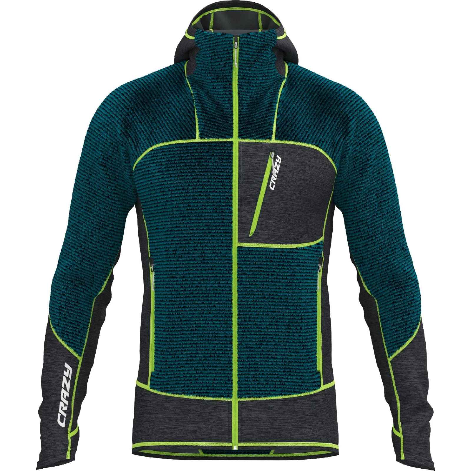 Il est équipé d’une poche poitrine et de deux poches mains zippées, le bas des manches est muni de passe-pouces.